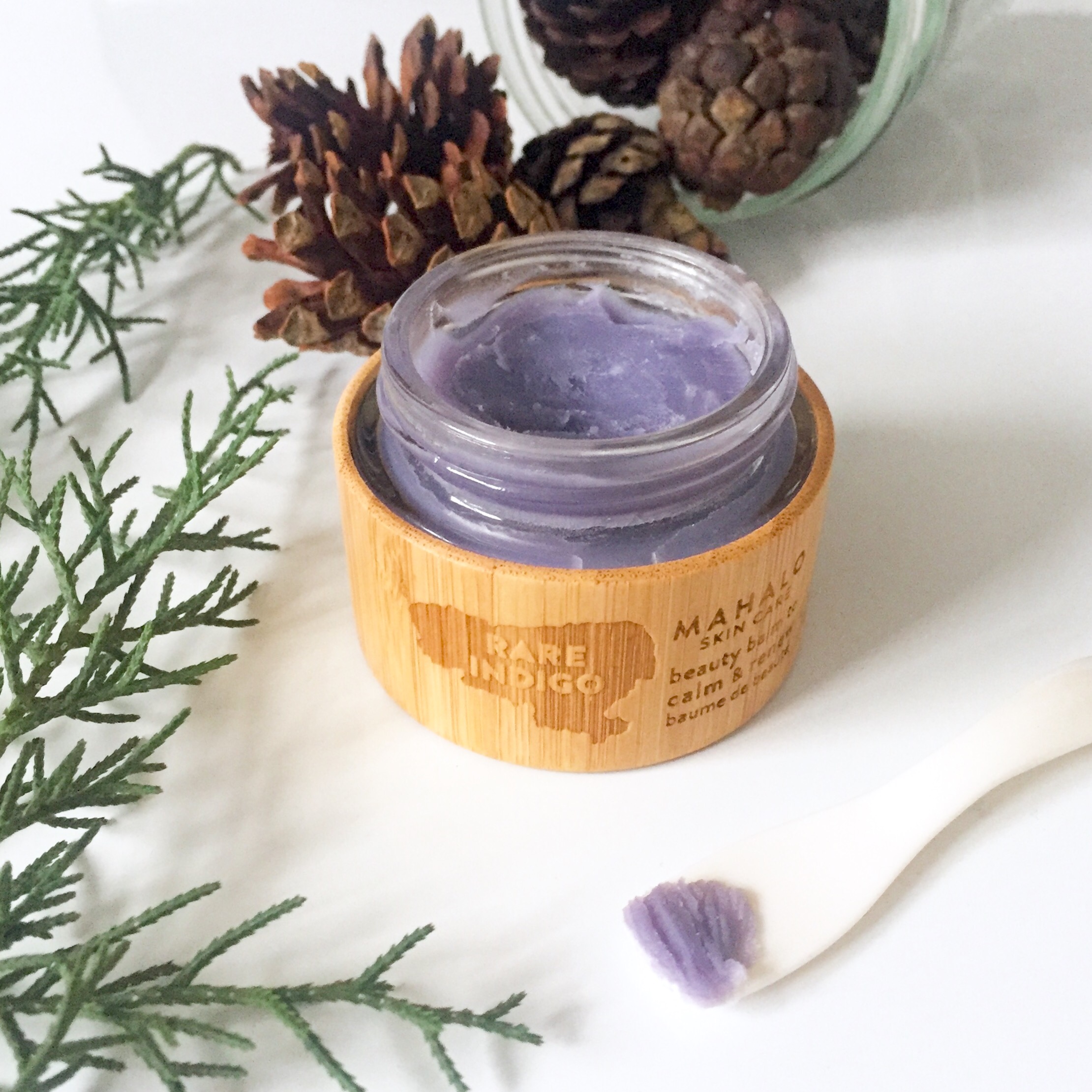 When winter started, it was a no brainer that I needed to add Mahalo’s Rare Indigo Balm to my ever growing green beauty stash. Green beauty lovers all around the world rave about the powerful moisture punch that helped heal problem skin, leaving them radiant and glowing – how could I not want to join the Mahalo tribe? Packed with 29 active ingredients, this gorgeous purple-hued balm helps to: